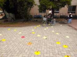 また、自転車運転時の交通ルールの紙芝居の後に、出来るだけゆっくりと自転車を運転するバランストレーニングを
